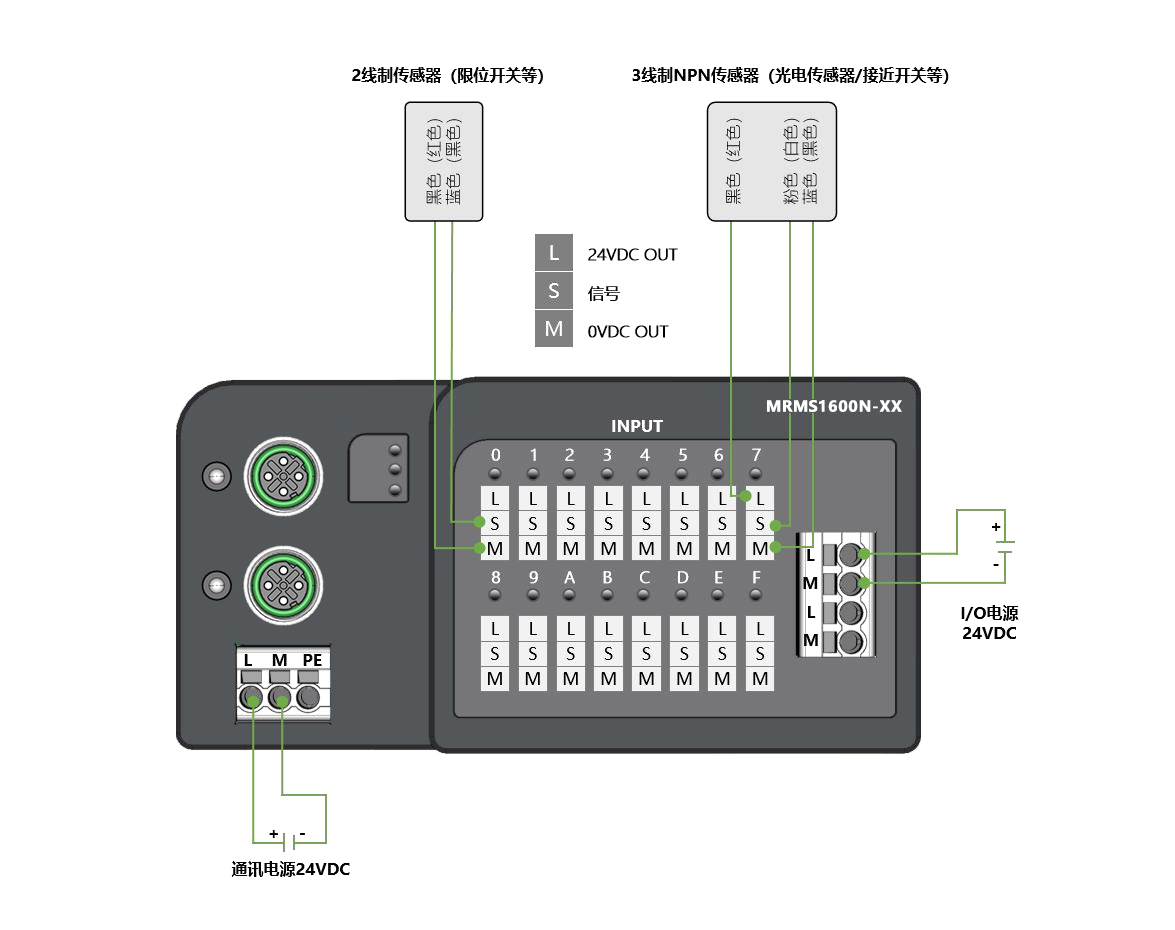 面板式快接線分布式I/O,PROFINET通訊,2xM12,可級聯(lián);數(shù)字量16入 NPN,24VDC,歐式彈簧端子;導(dǎo)軌安裝&打孔安裝(下單時需備注)