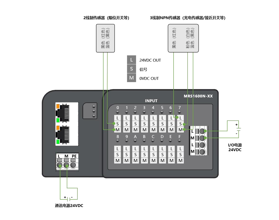 面板式快接線分布式I/O,EtherNet/IP通訊,2xRJ45,可級聯(lián);數(shù)字量16入 NPN,24VDC,歐式彈簧端子;導(dǎo)軌安裝&打孔安裝(下單時(shí)需備注)